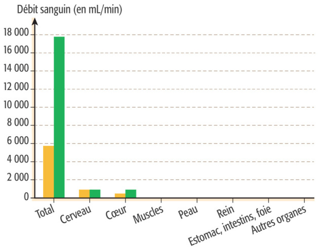 2. Comparer les débits sanguins, au niveau des différents organes, au repos et pendant un exercice physique.
