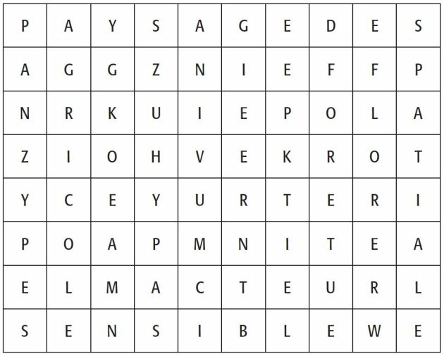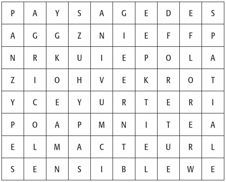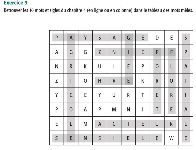 Retrouver les 10 mots et sigles du chapitre 4 (en ligne ou en colonne) dans le tableau des mots mêlés.