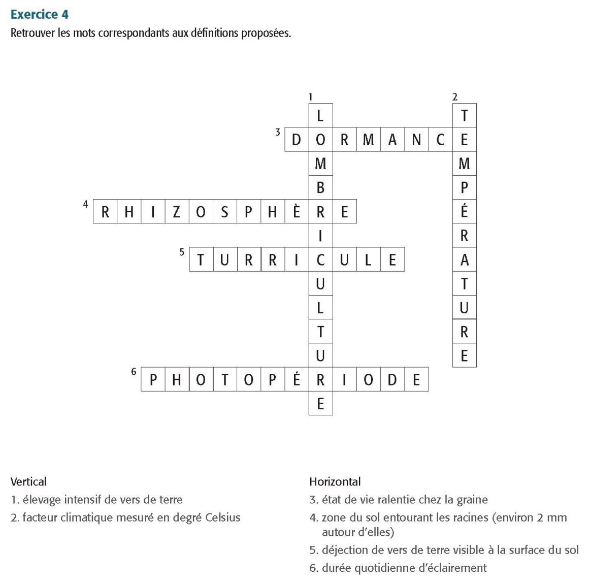 Retrouver les mots correspondants aux définitions proposées.