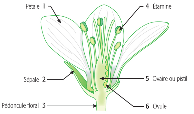 L'oxalis petite oseille (Oxalis acetosella) est une plante courante de sous-bois. Ses fleurs sont hermaphrodites. Légender la fleur d'oxalis ci-dessous.
