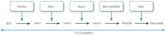 1. Représenter, sur un schéma légendé, l'histoire de vie de la puce avec ses différents stades.